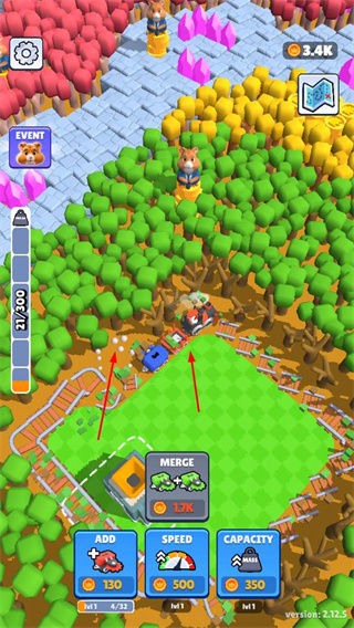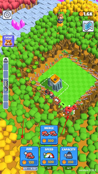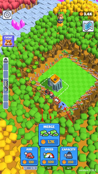 1、點(diǎn)擊MERGE合并伐木車,提升伐木效率,這是積累資源的關(guān)鍵操作,開啟伐木經(jīng)營(yíng)之旅。