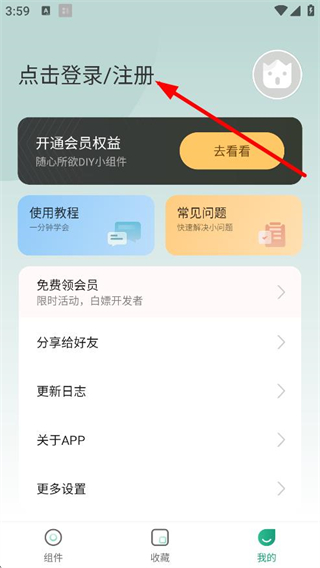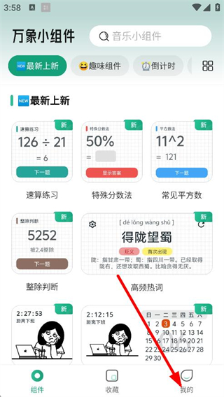 1、在萬象小組件的組件頁面,點擊右下角我的,進入個人中心頁面。