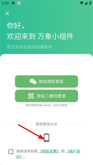 3、在登錄注冊選擇頁面,點擊手機圖標,進入手機號登錄頁面。