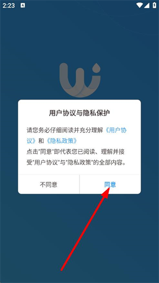 1、在用戶協(xié)議與隱私保護(hù)彈窗中,點擊同意,進(jìn)入APP主界面。