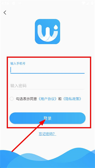 3、在登錄頁面,輸入手機號、密碼,點擊登錄,完成登錄操作。