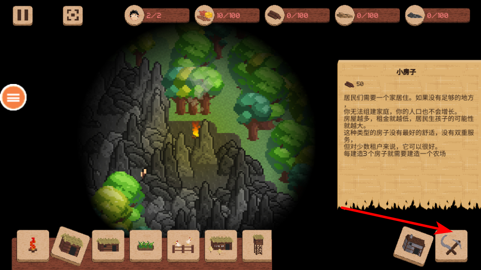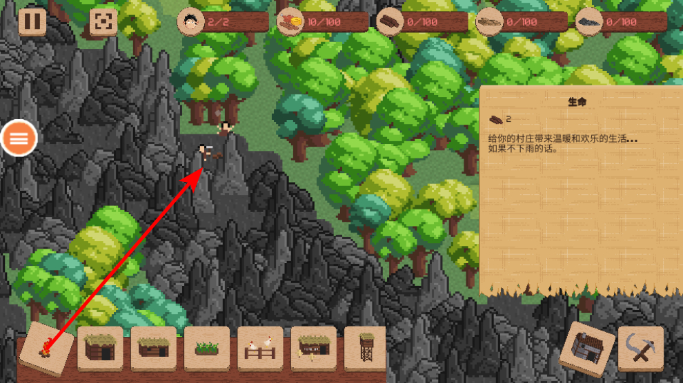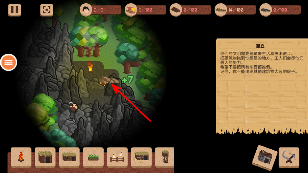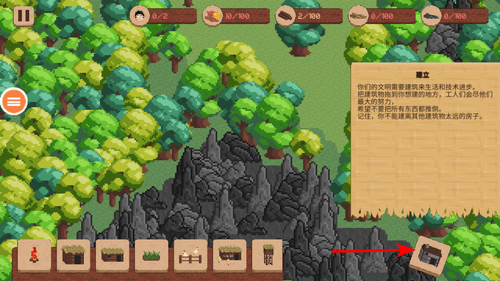 4、建設(shè)建筑結(jié)構(gòu),將建筑拖放到采集好的資源區(qū)域或合適的位置,完成建筑的建設(shè),提升居民的生活發(fā)展條件。