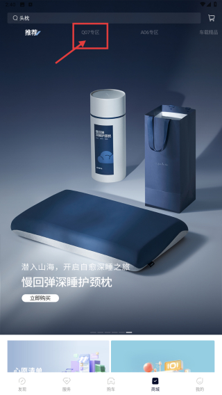 2、在商城頁面,選擇Q07專區(qū),瀏覽專區(qū)內(nèi)汽車周邊商品。