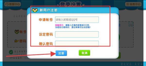 4、在新用戶注冊頁面,輸入郵箱或QQ號,設(shè)定并確認密碼,點擊注冊,完成賬號注冊。