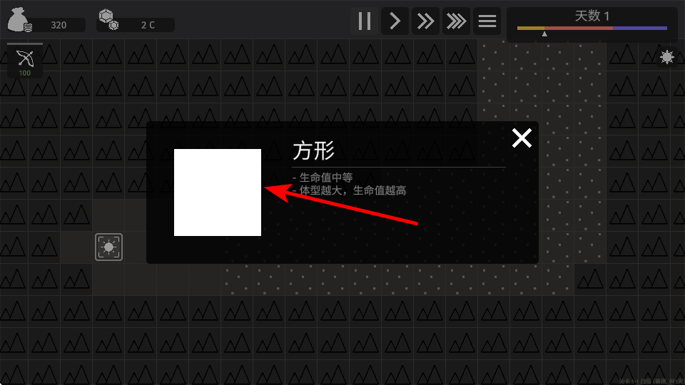 4、識別敵人特征,了解方形敵人的特征生命值中等,體型越大生命值越高,根據(jù)特點(diǎn)調(diào)整防御策略。
