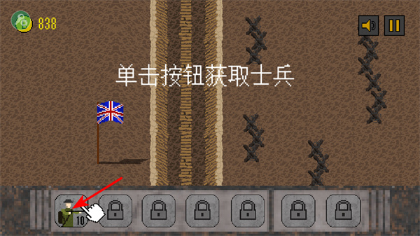 1、招募士兵操作,點擊士兵招募按鈕,消耗資源獲取士兵,擴充己方的戰(zhàn)斗力量,為戰(zhàn)壕進攻做準備。