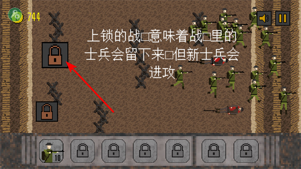4、利用戰(zhàn)壕鎖定,了解上鎖戰(zhàn)壕的機制,上鎖后戰(zhàn)壕內的士兵會留守,新士兵繼續(xù)進攻,合理運用該機制。