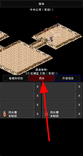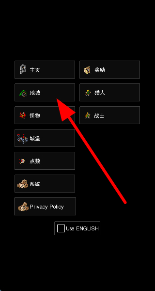 1、在菜單界面選擇地牢選項,進入地牢場景,開啟冒險,在不同區(qū)域探索,遭遇各類怪物。