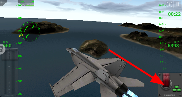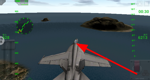 4、駕駛戰(zhàn)機在海上、島嶼等不同地形上空飛行,調整視角飛行方向和高度,探索廣闊的飛行區(qū)域。