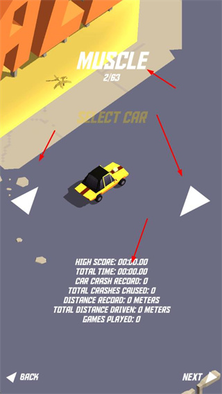 4、可選擇不同類型的車輛,持續(xù)挑戰(zhàn)更高的游戲記錄,推動游戲進程。