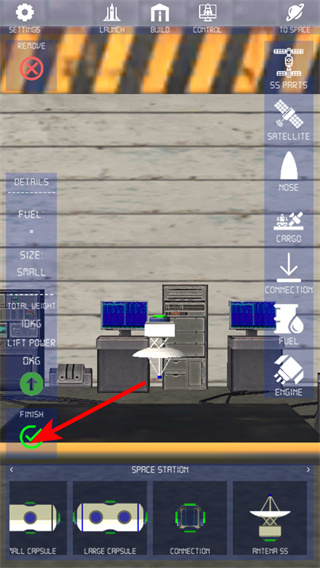 3、空間站部件組裝完畢后,點(diǎn)擊右下角的ss空間站的相關(guān)的零件,確認(rèn)空間站的建造完成。