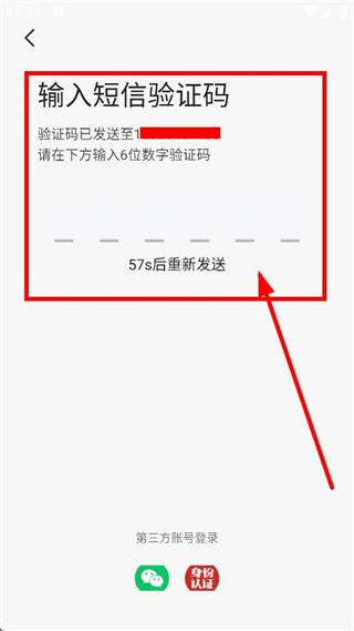 4、在輸入短信驗(yàn)證碼頁面,輸入收到的6位數(shù)字驗(yàn)證碼,完成登錄或注冊(cè)操作。