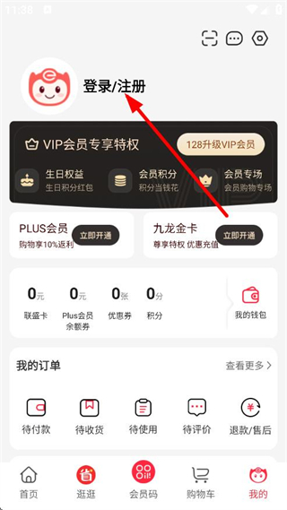 2、在個(gè)人中心頁面,點(diǎn)擊登錄/注冊(cè),進(jìn)入登錄頁面。