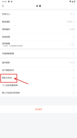3、在設(shè)置界面,點(diǎn)擊隱私與安全選項(xiàng),進(jìn)入隱私政策頁(yè)面。