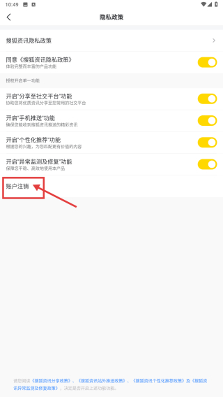 4、在隱私政策頁(yè)面,找到賬戶注銷選項(xiàng),按提示完成賬戶注銷操作。