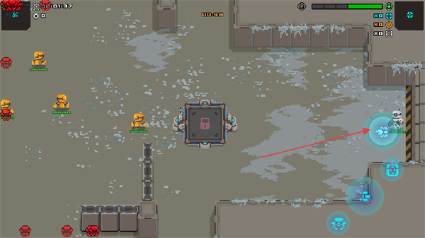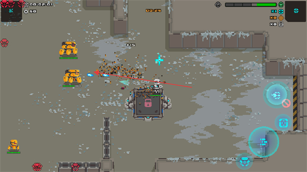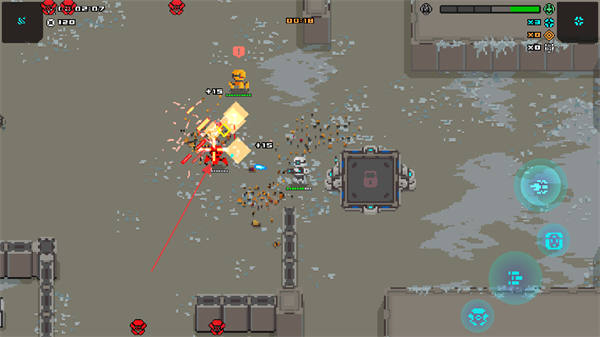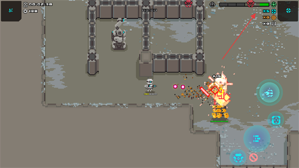 2D像素畫面還原復(fù)古街機(jī)質(zhì)感,工業(yè)風(fēng)戰(zhàn)場與機(jī)甲設(shè)計相得益彰,搭配射擊時的像素粒子特效,營造出硬核又懷舊的戰(zhàn)斗氛圍。