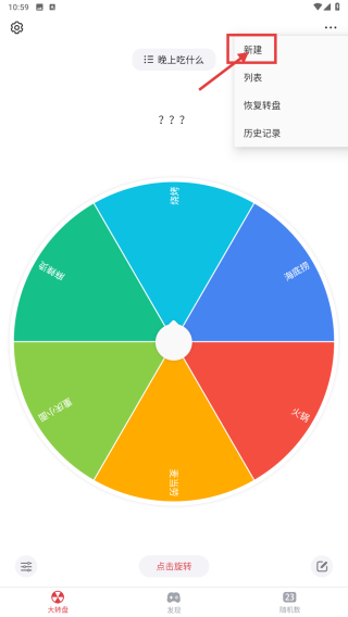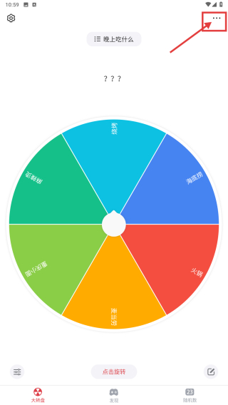 1、打開決策轉(zhuǎn)盤類應(yīng)用,點(diǎn)擊右上角···圖標(biāo),展開功能菜單。