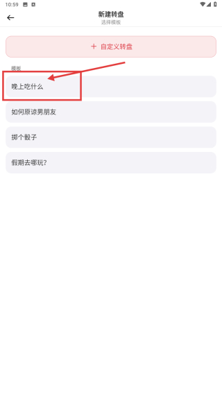 3、在新建轉(zhuǎn)盤頁(yè)面,選擇晚上吃什么模板,進(jìn)入模板設(shè)置界面。