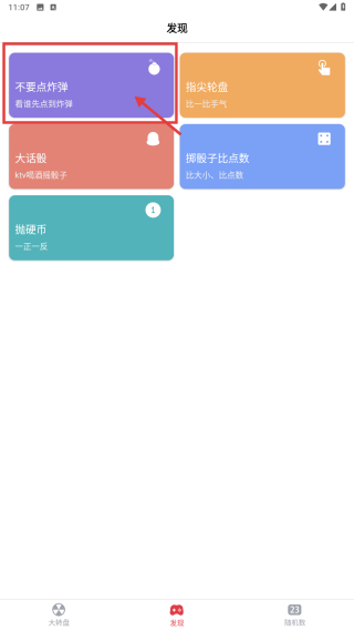2、在發(fā)現(xiàn)功能頁面,選擇不要點炸彈游戲,進入游戲設(shè)置界面。