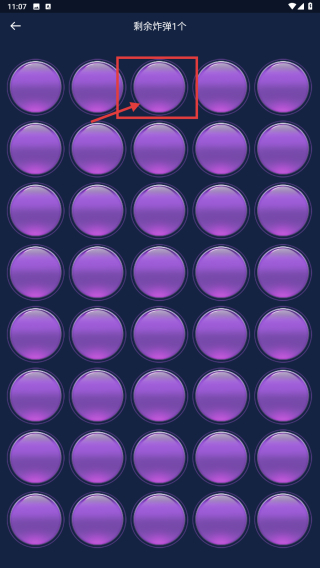 4、在游戲游玩界面,點擊紫色圓圈避開炸彈,進行游戲游玩。