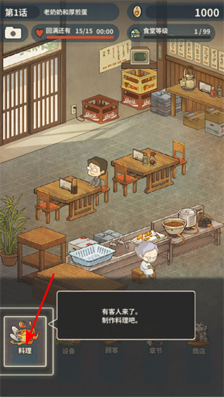 1、進入料理制作界面,點擊左下角料理按鈕,進入料理制作板塊,開啟了食物的制作流程。