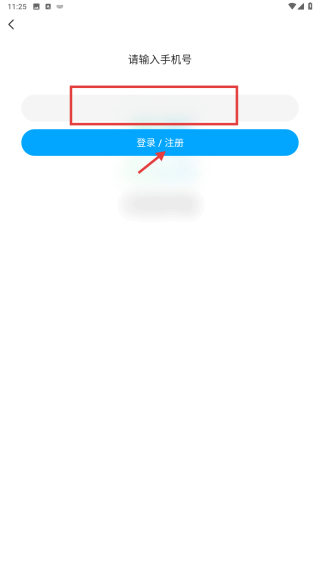 4、在手機(jī)號(hào)輸入界面,輸入手機(jī)號(hào)后點(diǎn)擊登錄/注冊(cè)按鈕,完成賬號(hào)登錄操作。