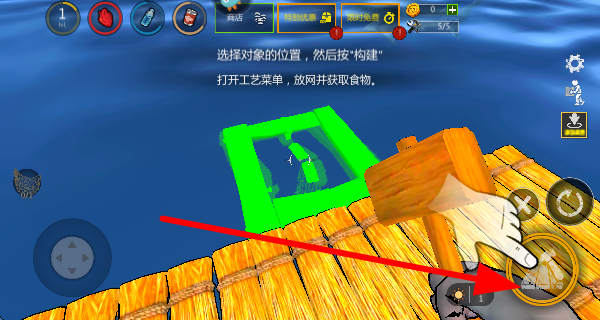 2、選擇對象的位置,然后按構建鍵,打開工藝菜單,放置物品,比如放網(wǎng),以此獲取食物等資源。