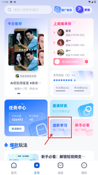 2、在變現(xiàn)功能頁面,選擇進階學習板塊,進入靈感教程列表頁。