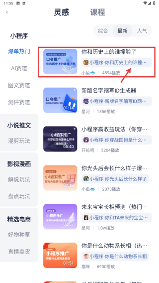 3、在靈感教程列表頁,點擊你和歷史上的誰撞臉了教程條目,進入教程詳情頁。