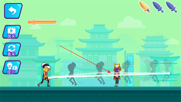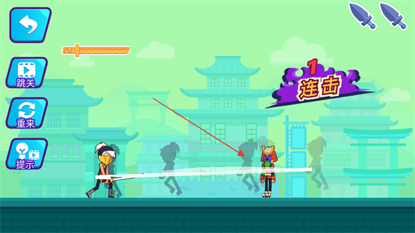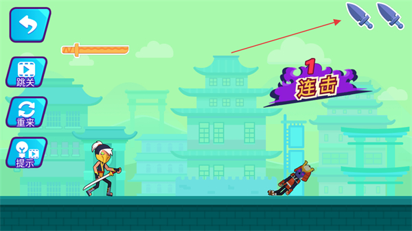 2、留意空中飛來的飛刀道具,點擊收集,可用于后續(xù)攻擊敵人。
