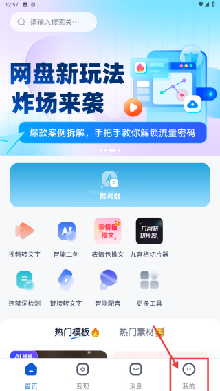 1、打開視頻創(chuàng)作類應(yīng)用,點(diǎn)擊底部我的選項(xiàng),進(jìn)入個人中心頁面。