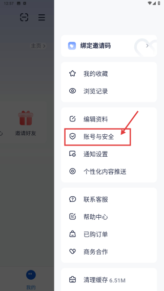 3、在功能列表中,選擇賬號與安全選項(xiàng),進(jìn)入賬號管理頁。