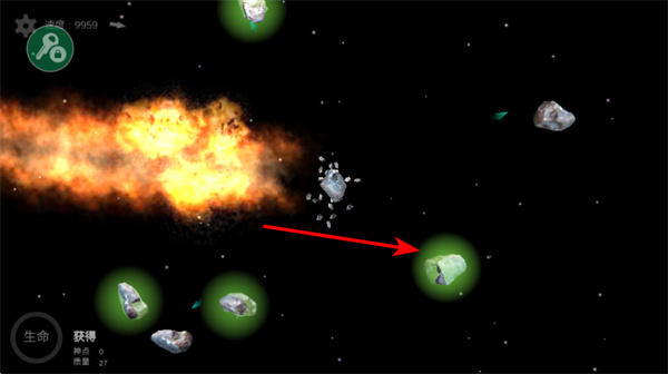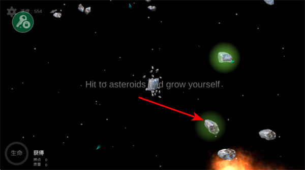 2、吞噬小型隕石,操控自身隕石,撞擊小型隕石,通過吞噬來增長自身的質(zhì)量和體積。