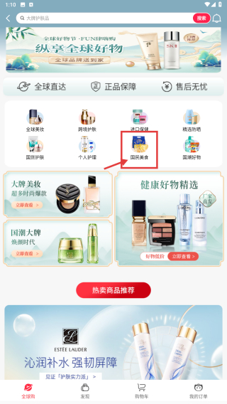 1、打開電商類應(yīng)用,點(diǎn)擊全球購分類選項(xiàng),進(jìn)入全球購商品頁面。