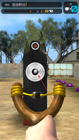 2、進入游戲后,瞄準靶心,發(fā)射彈弓上的球,盡量命中靶心獲取高分。