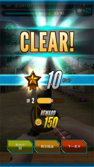 4、完成關(guān)卡后,若顯示CLEAR!,根據(jù)積分獲得獎勵,點擊下一關(guān)卡挑戰(zhàn)新關(guān)卡。