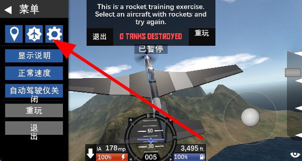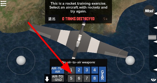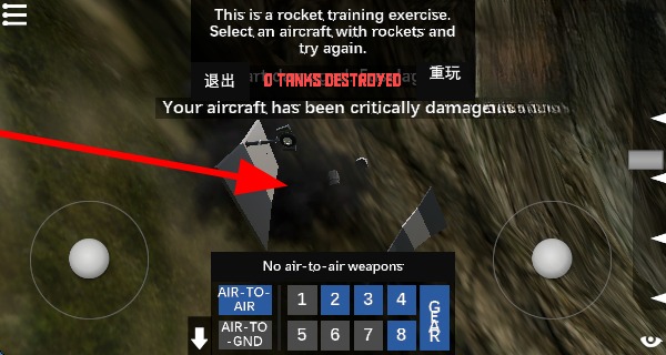 2、玩家開始體驗選擇帶有火箭的飛機,利用武器欄,選取合適的空對地武器,參與火箭訓練任務。