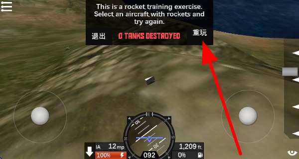 4、任務失敗后,在游戲里面可以點擊重玩按鈕,重新開始火箭訓練,不斷嘗試以完成任務目標。