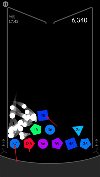 4、通過持續(xù)消除磚塊積累分數(shù),同時關(guān)注磚塊布局,規(guī)劃彈球路徑,朝著更高分數(shù)努力。