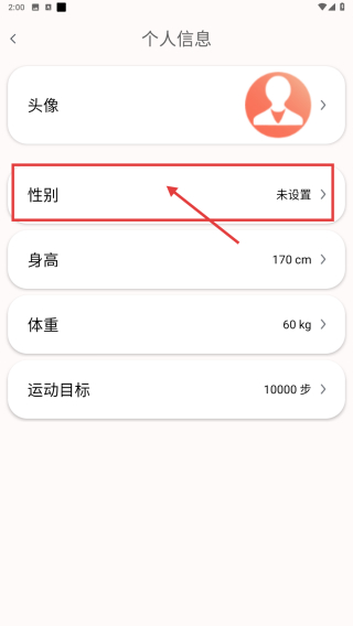 3、在個(gè)人信息設(shè)置界面,點(diǎn)擊性別選項(xiàng),彈出性別選擇彈窗。