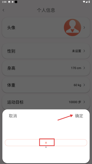 4、在性別選擇彈窗中,選擇性別后點(diǎn)擊確定按鈕,完成性別設(shè)置操作。