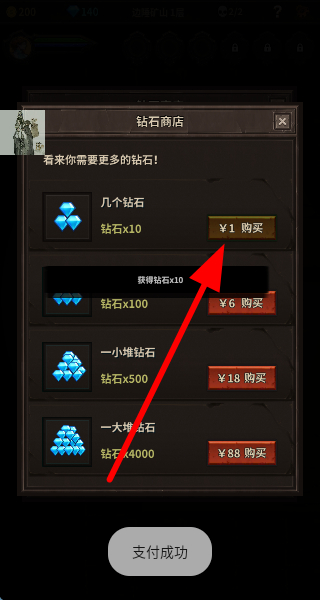 4、進(jìn)入鉆石商店,能無限購買不同數(shù)量的鉆石,有低價(jià)的幾個(gè)鉆石,也有大量的一堆鉆石等,助力冒險(xiǎn)。