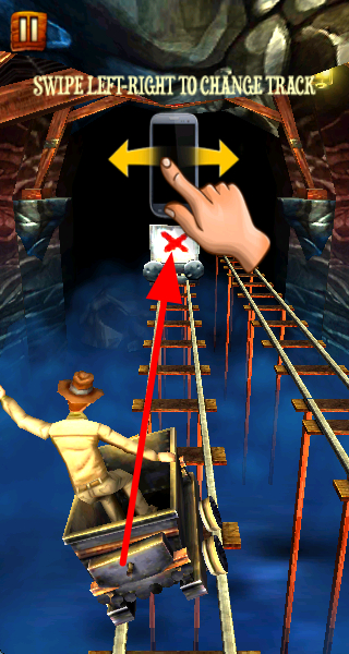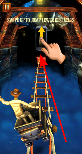 2、遇到較低的障礙物時,向上滑動屏幕,讓礦車跳躍,越過障礙物,繼續(xù)在軌道上行駛。