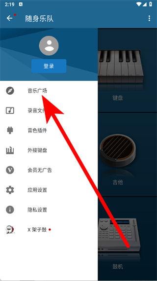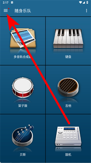 1、打開(kāi)隨身樂(lè)隊(duì),點(diǎn)擊左上角三條橫線的菜單按鈕。