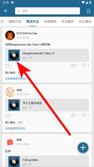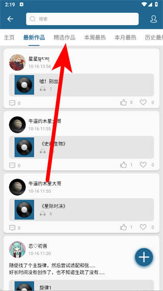 3、進(jìn)入音樂(lè)廣場(chǎng)后,點(diǎn)擊最新作品等標(biāo)簽切換音樂(lè)分類。