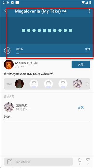 5、進(jìn)入作品詳情頁(yè)后,音樂(lè)將自動(dòng)播放。