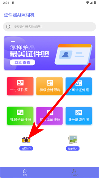 1、打開證件照APP,點擊首頁的拍照制作按鈕。