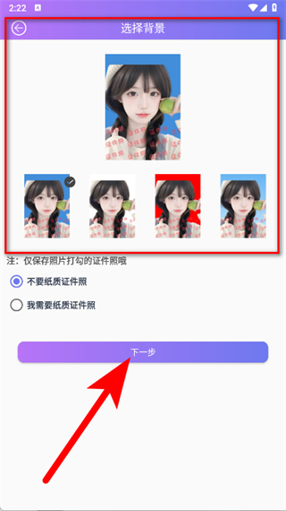 4、進入選擇背景頁面,選好背景后,點擊下一步。