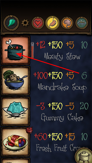4、制作特色料理,根據(jù)選擇的食材和配方,制作如Meaty Stew等特色料理,提升料理的屬性加成。