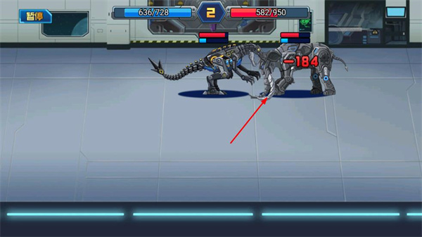 2、操控機(jī)甲恐龍與敵方機(jī)甲戰(zhàn)斗,通過攻擊削減敵方血量,爭取戰(zhàn)斗勝利。